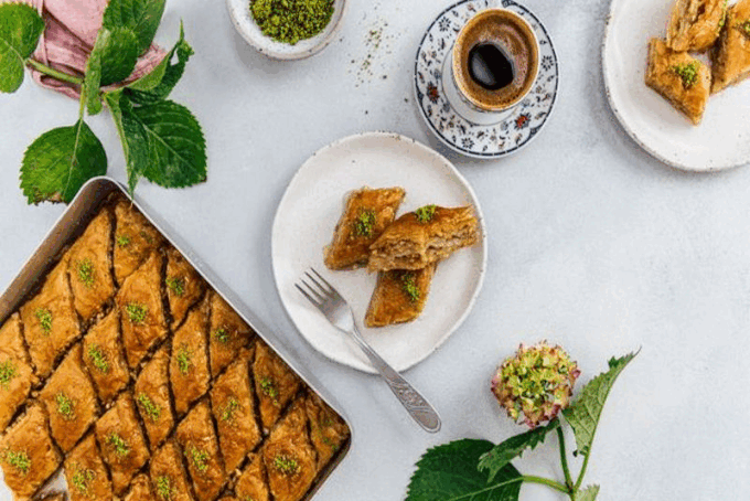 Baklava Ürün İçeriği; Un, nişasta, yağ, yumurta, tuz, şeker, ceviz içi. Tepsi Adedi: 91 Adet Tepsi Kg: 3.300 gr Küçük Tepsi Adedi: 72 Adet Tepsi Kg: 2.500-2.700 gr 24 Kişilik Börek Ürün İçeriği; Un, yağ, yumurta, beyaz peynir, maydanoz, tuz Büyük Tepsi Adedi: 30 Adet Tepsi Kg: 3.500 gr 15 Kişilik Küçük Tepsi Adedi: 24 Adet Tepsi Kg: 2.500-2.700 gr 12 Kişilik